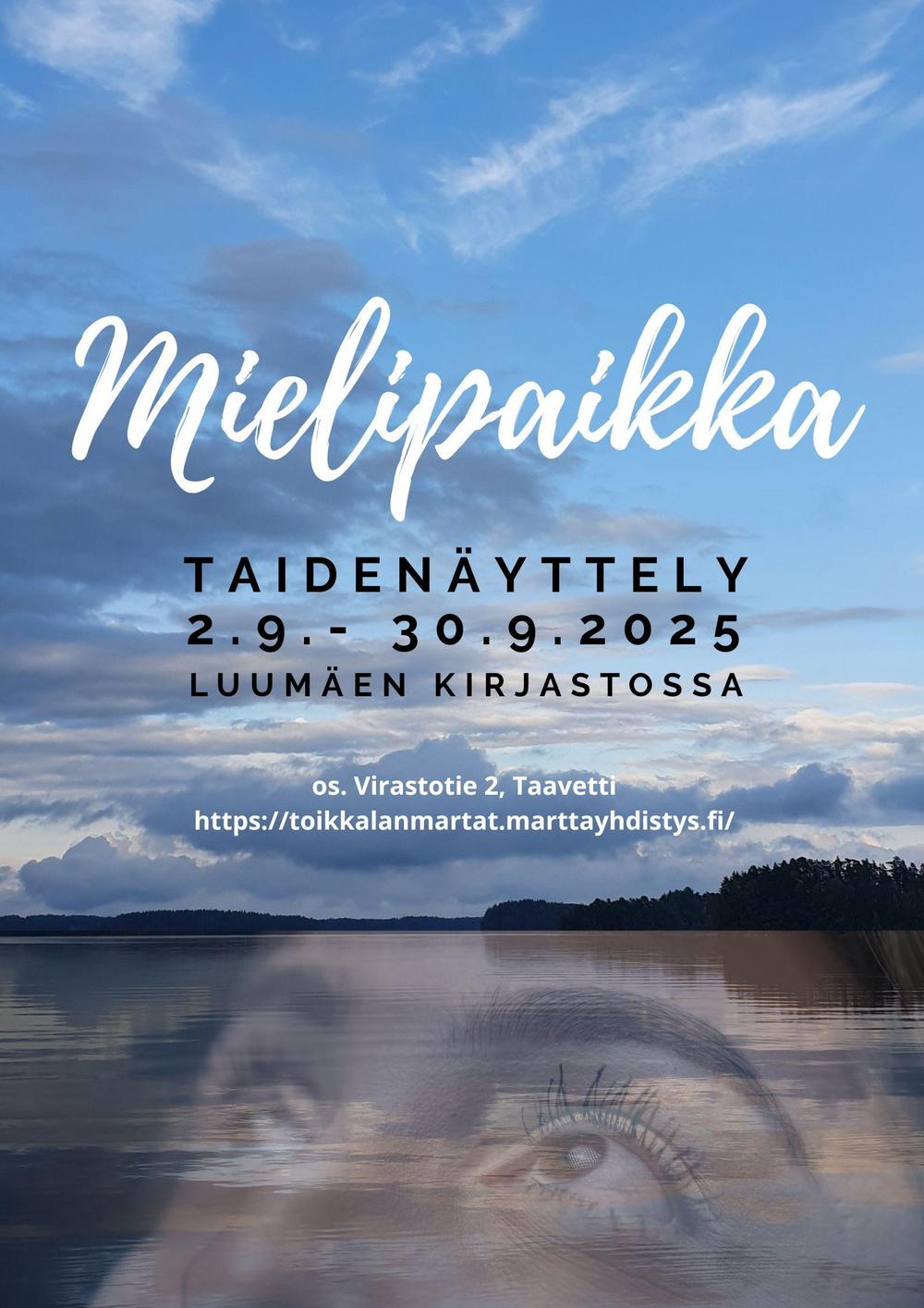 kaikille näyttelyyn osallistuneille taiteilijoille, Kotkaniemi-museolle, Luumäen kirjastolle ja Mielipaikka-näyttelykokonaisuuden mahdollistaneille Luumäen kunnalle ja Lions Club Luumäki/Ukko-Pekka ry:lle sekä Toikkalan Marttojen aktiiveille (9.10.2025, UL)