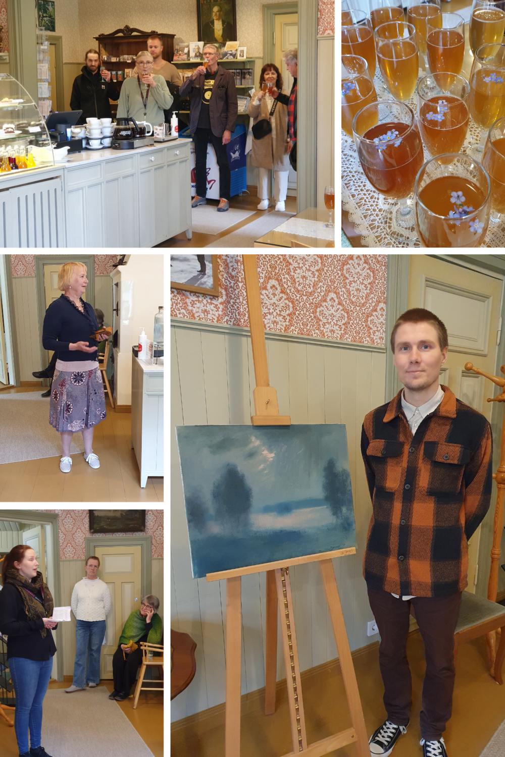 Näyttelyn avajaiset ovat lauantaina 24.5.2025 klo 13 Kotkaniemen Ellen-kahvilassa. Tuomas esittelee Mielipaikka-maalauksensa. Museoamanuenssi Annastiina Löppönen kertoo myös Svinhuvudien perheen mielipaikasta ´Kotkaniemi´. Avajaistilaisuus on avoin yleisölle. Tervetuloa lumoutumaan yhdessä! (16.5. Ulla L.)