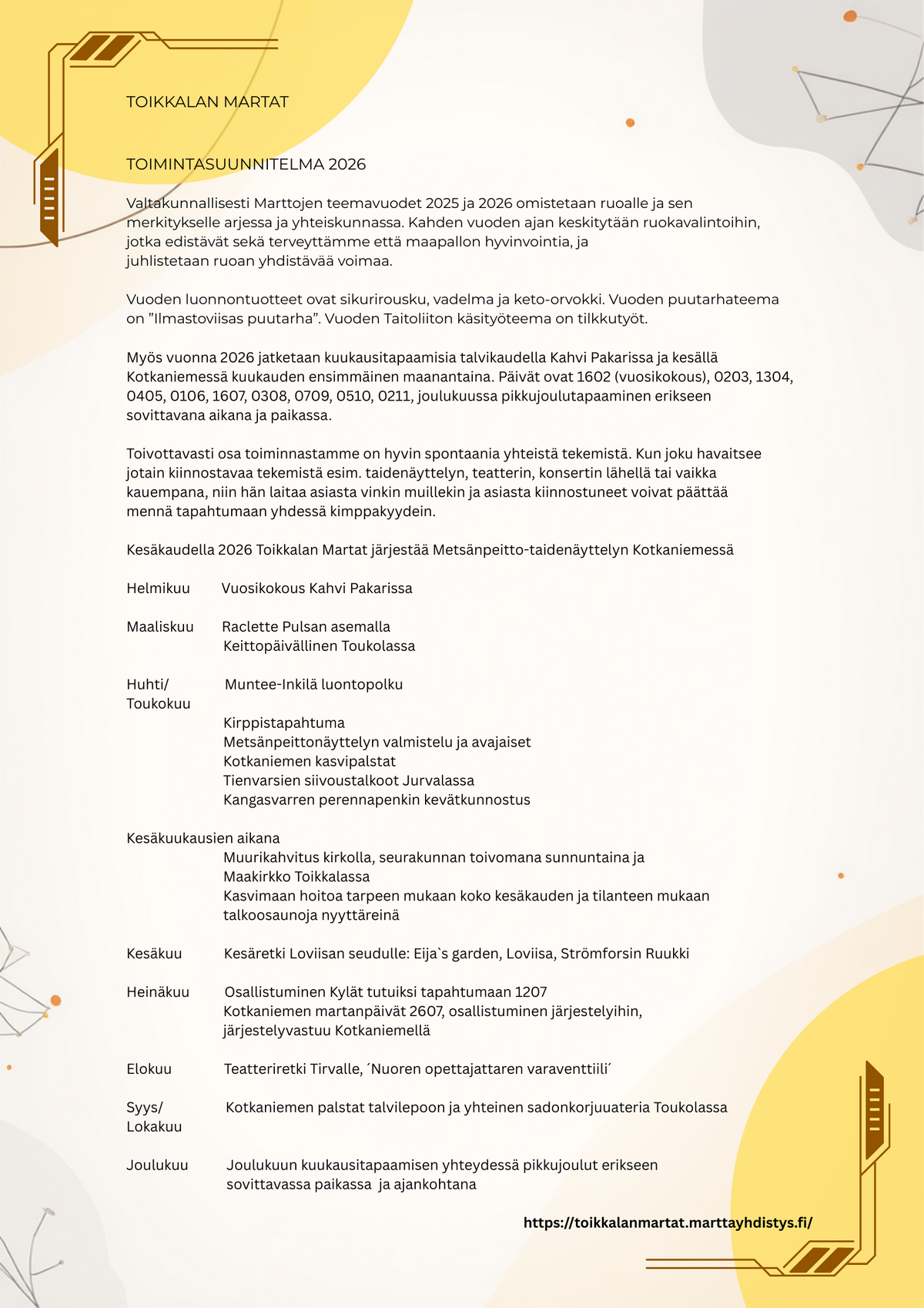 Toimintaa vuonna 2026